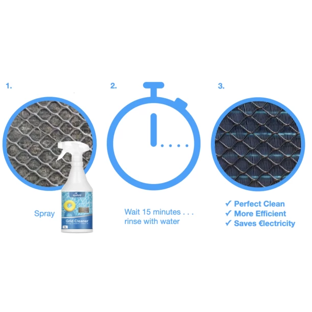 Met Grid Cleaner reinigingsmiddel voor warmtepompen en airconditioners gaat uw apparaat jaren langer mee. Met Aquatural Grid Cleaner is het schoonmaken en onderhoud van een warmtepomp een eenvoudige klus die maximaal 15 minuten tijd kost. Je hebt geen mechanische hulpmiddelen nodig, die de lamellen of andere onderdelen zouden kunnen beschadigen.