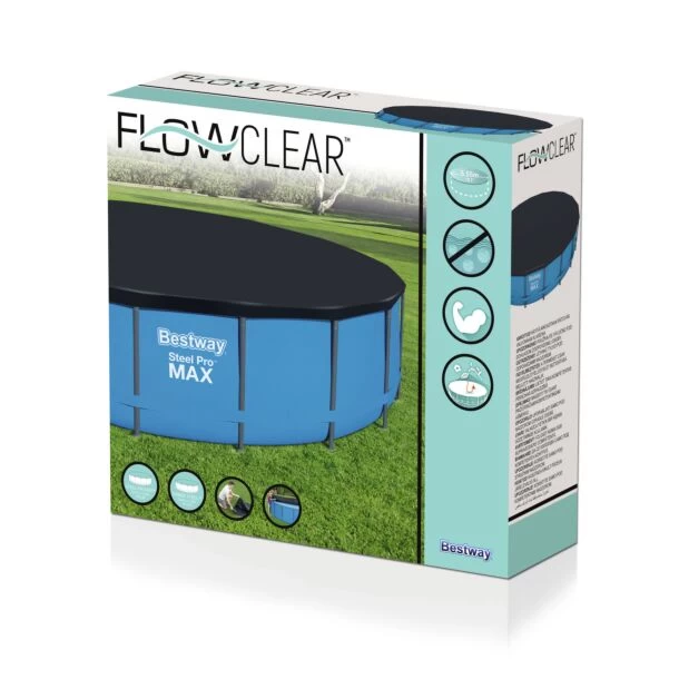 Een KOUD afdekzeil van pvc is moeilijk te plooien en daardoor moeilijker op het zwembad aan te brengen. Leg het kort in de zon om een beetje warmer en soepeler te worden.