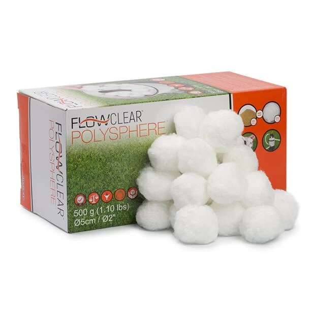 Deze handige bolletjes van 100% polyethyleen kun jij eenvoudig in jouw zandfilter plaatsen. De zachte bolletjes werken zeer efficiënt, zijn recyclebaar en niet giftig. Daarnaast zijn deze bolletjes heel licht: 500 gram komt namelijk overeen met 18 kilo zand. Als je gebruik maakt van deze witte bolletjes, dan moet je de backwash functie van het zandfilter niet gebruiken. De bolletjes staan ook wel bekend onder de naam aqualoon.