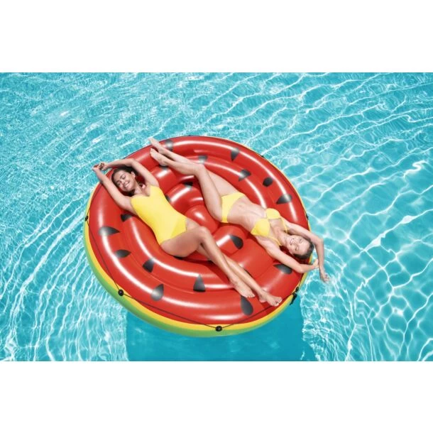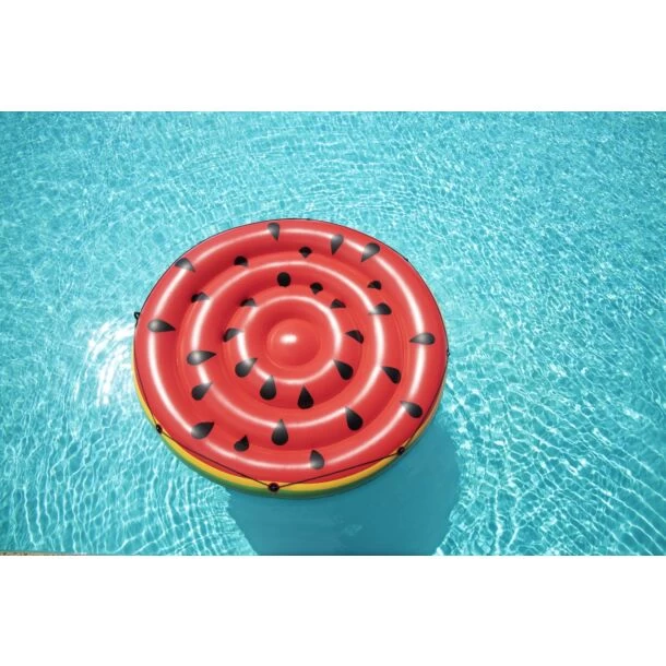 Heerlijk in het zwembad drijven op een Bestway Watermeloen Eiland Luchtbed? Dit luchtbed valt op door de vrolijke en kleurrijke print. Neem hem mee naar zwembad of strand en je hebt de tijd van je leven. Het luchtbed is uitgerust met een veiligheidsventiel en een grijpkoord rondom. Het eiland heeft een maximaal draagvermogen van 90 kilogram en wordt geleverd inclusief reparatiepatch.