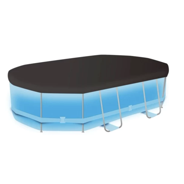 De maat van het zeil is iets kleiner dan de afmeting van het zwembad, omdat daarbij uitgegaan wordt van de buitenmaat van de iets uitlopende poten onderaan. Met het handige bevestigingskoord maak je het zeil eenvoudig vast aan het zwembad.